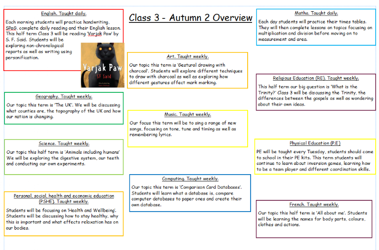 Miss Butler and Mr Jefferies welcome you all into Class 3 where you are now part of KS2! The main focus when joining KS2 is focusing on expanding reading comprehension and ensuring key mathematical concepts like Times Tables are secure.